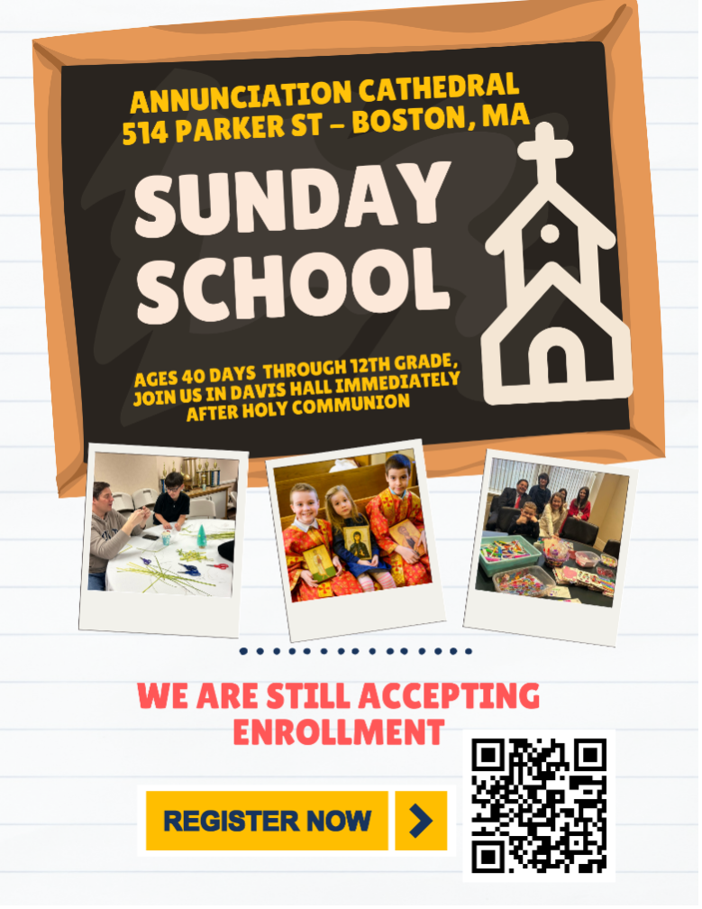 The Sunday School Committee, comprised of many dedicated parents and teachers, provide our Sunday School students with an open, safe and loving environment for students to be their genuine Christian selves. The mission of our Sunday School program is to further educate our children on the commandments and teachings of our Lord Jesus Christ embodied in His Church. Through this ministry, it is our prayer that Christ Himself instills within our students a longing and yearning for God in their everyday lives. Sunday School allows our youth to embark on a journey. It calls within our youth a deep desire to establish a life-long and life-transforming relationship with our Lord.